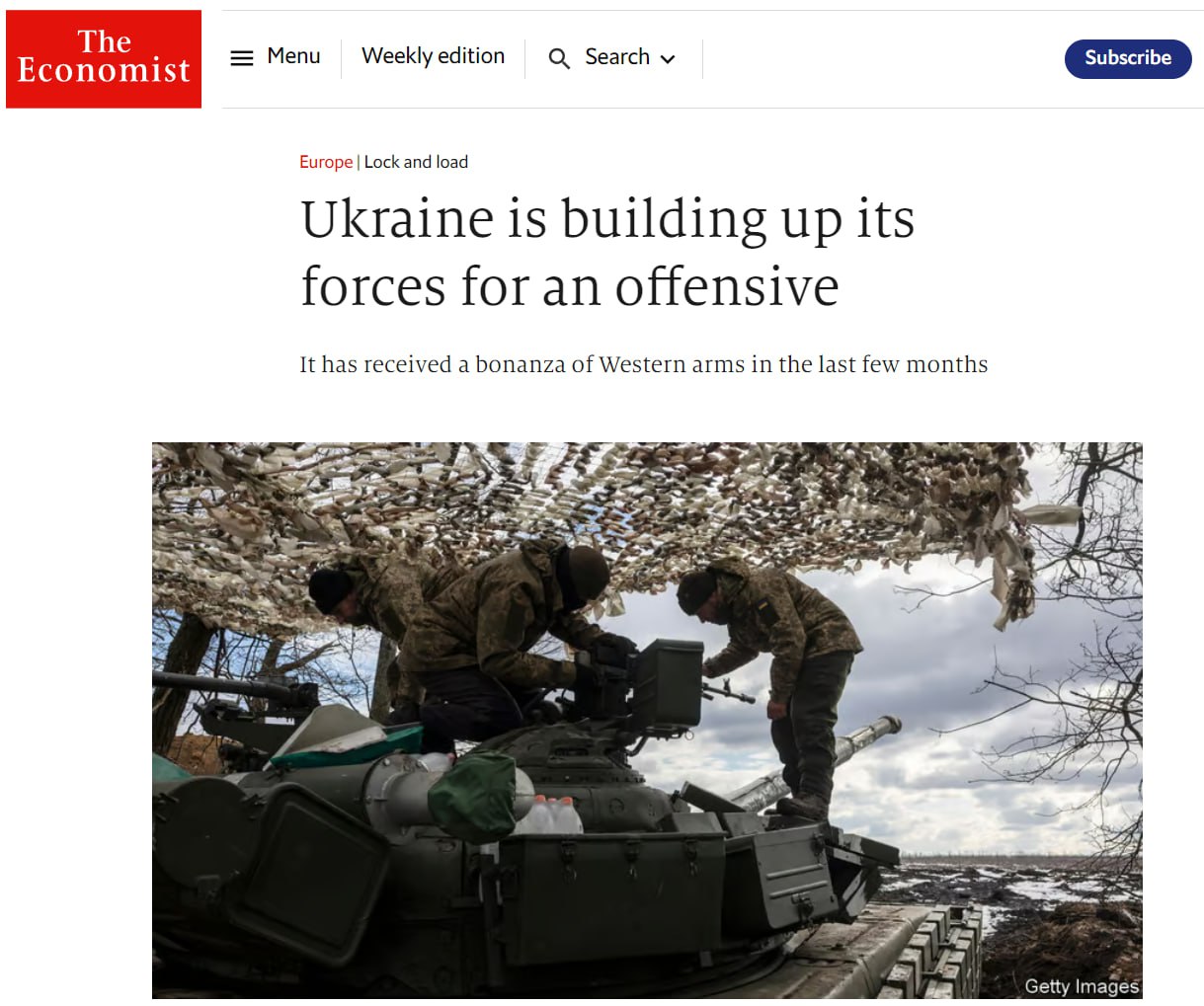11.50 Украина готовится к большому наступлению, за последние три месяца прибыло уже 40% военной помощи, оказанной Пентагоном с начала войны, пишет The Economist.