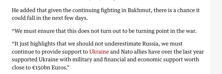 Отметим, сегодня западные военные эксперты и куратор "Вагнера" Пригожин заявили о захвате россиянами восточной части Бахмута. Украина этого не подтверждает.