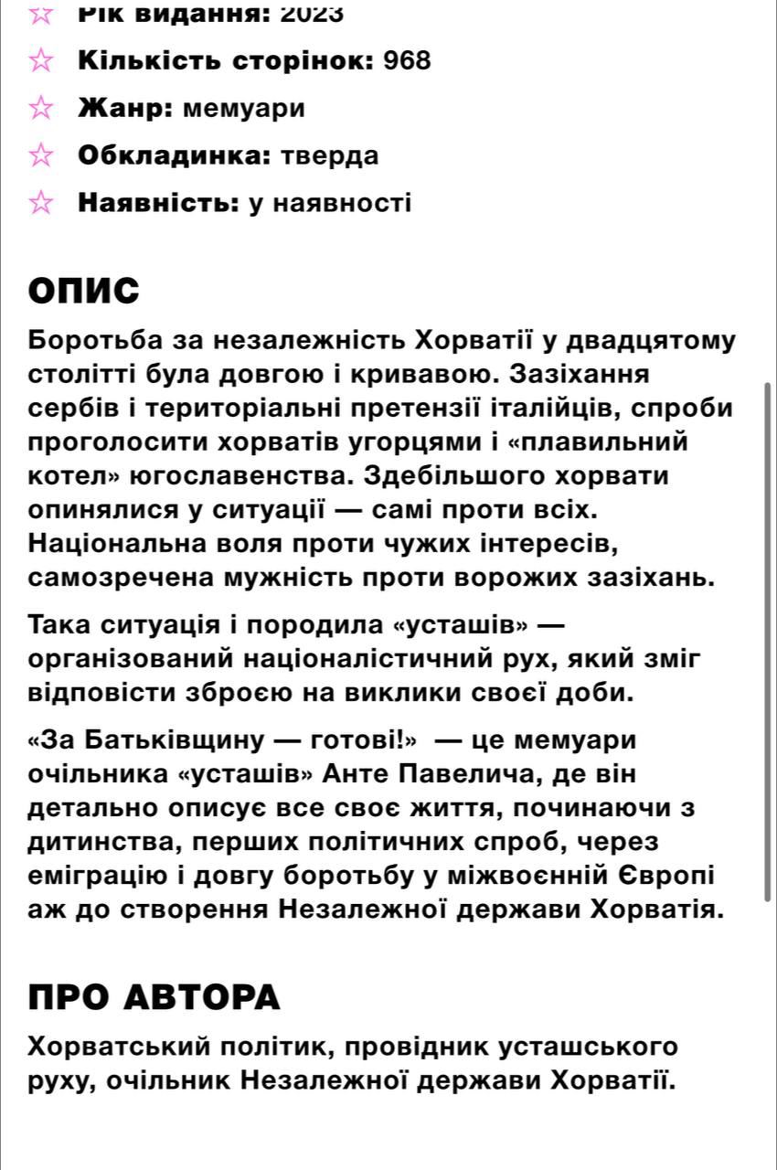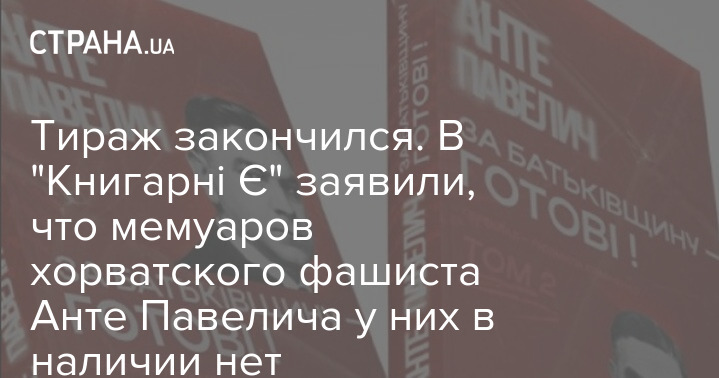 Тираж закончился. В "Книгарні Є" заявили, что мемуаров хорватского фашиста Анте Павелича у них в наличии нет