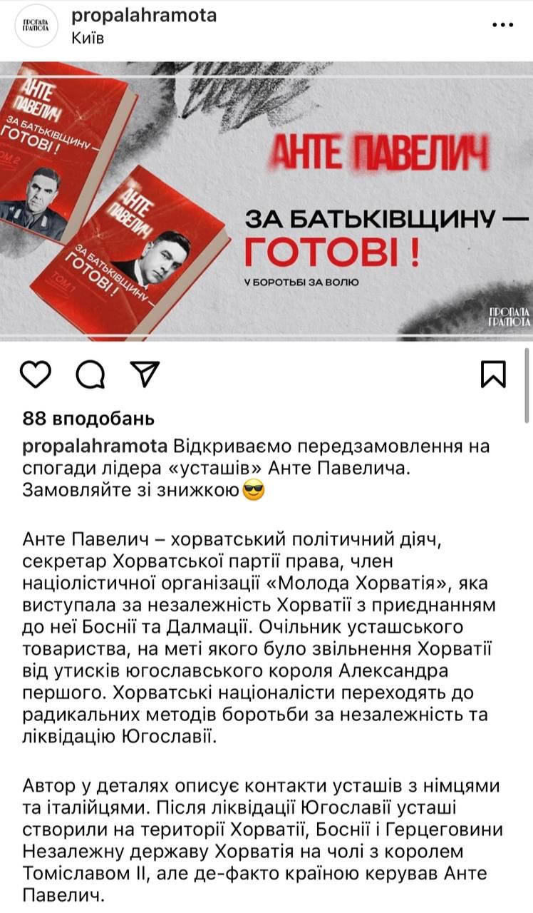 Напомним, книга вызвала скандал в сети, так как Павелич проводил во время Второй мировой войны этнические чистки. Также под руководством Павелича проходило массовое уничтожение сербов и ромов.