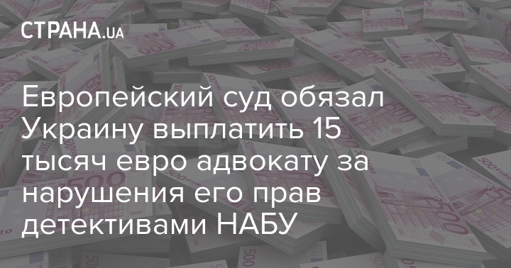 Европейский суд обязал Украину выплатить 15 тысяч евро адвокату за нарушения его прав детективами НАБУ