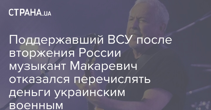 Российский музыкант, певец, солист группы "Машина времени" Андрей Макаревич, поддержавший ранее Украину, не помогает ВСУ.