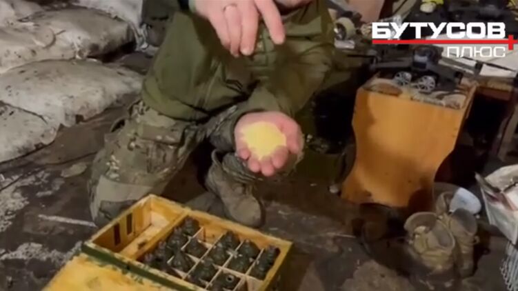 На видео из Курской области РФ, опубликованном журналистом, военнослужащие ВСУ показывают гранату, в которой вместо пороха – нечто похожее на кукурузную крупу.