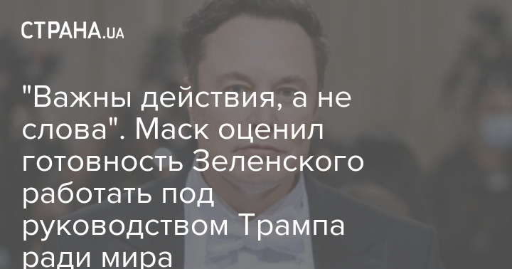 Близкий к главе Белого дома Дональду Трампу американский бизнесмен Илон Маск прокомментировал заявление президента Украины Владимира Зеленского о том, что он "готов работать под твердым руководством президента Трампа ради достижения прочного мира".