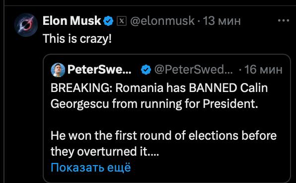 У Трампа резко раскритиковали Румынию и Евросоюз за происходящее с Джорджеску, который требовал прекратить войну в Украине и снять санкции с РФ – Илон Маск назвал "безумием" отказ Кэлину Джорджеску выдвигаться в президенты Румынии.
