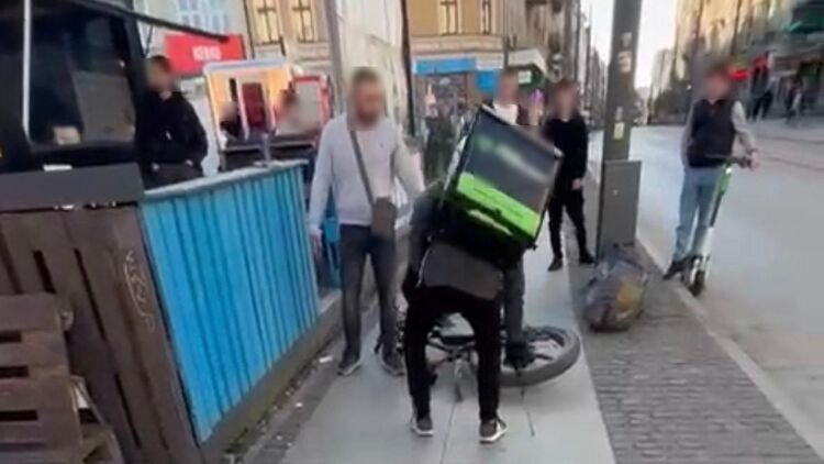 Судя по кадрам, мужчина работал доставщиком на велосипеде.