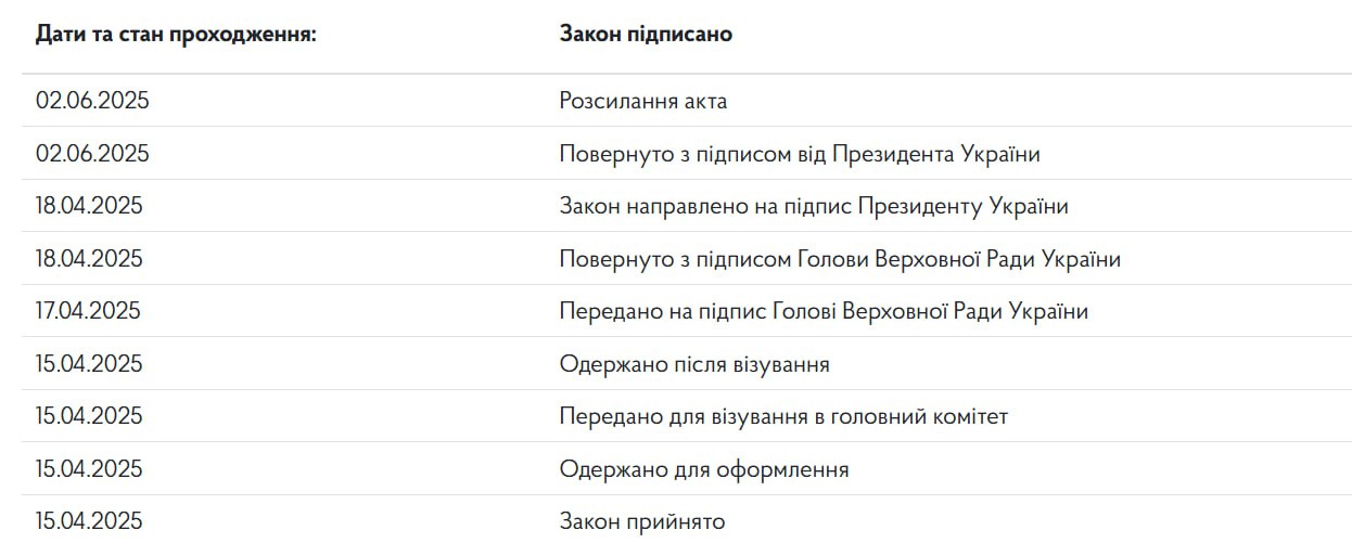 Об этом сообщается в карточке документа на сайте Верховной Рады.