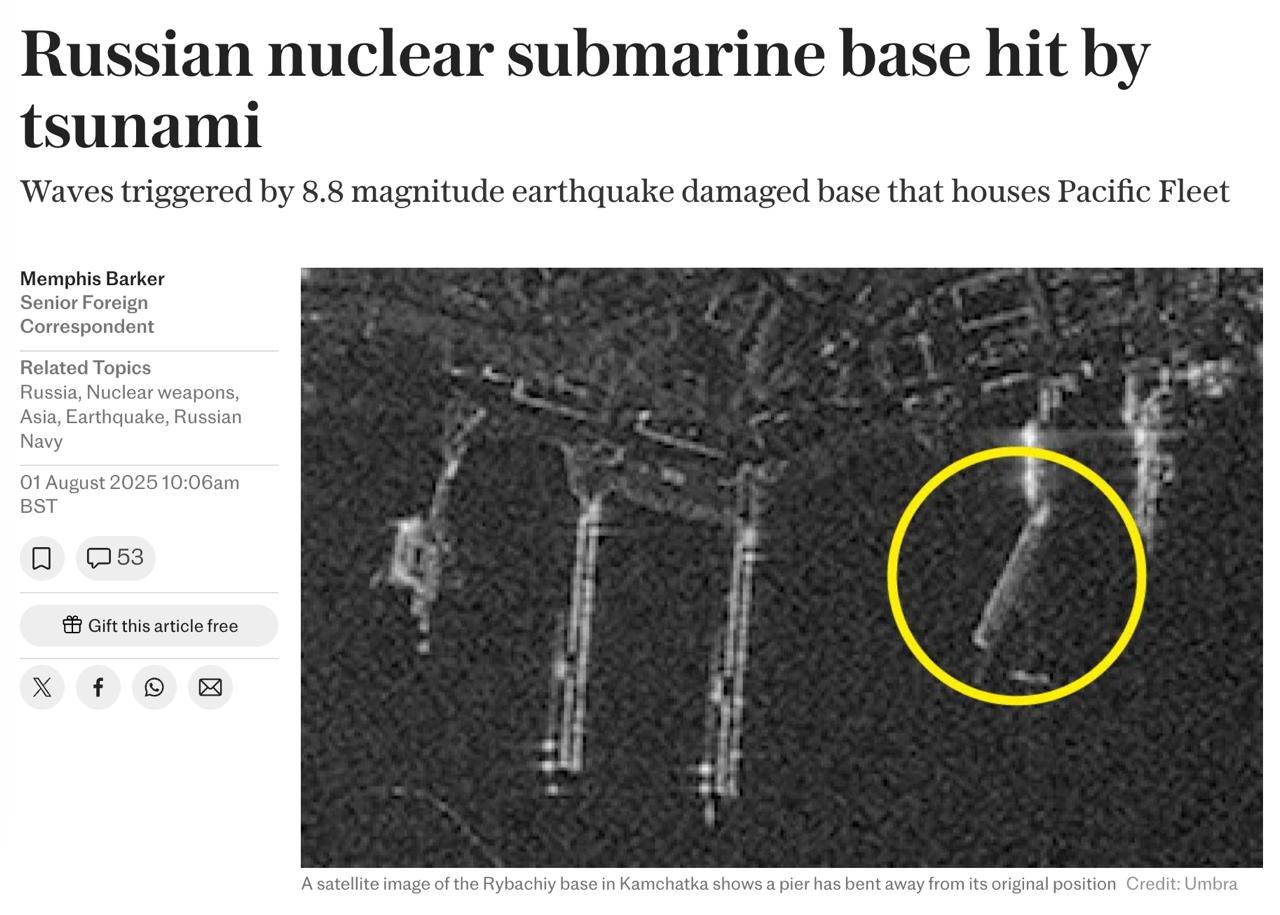 Из-за землетрясения на Камчатке оказалась повреждена база атомных подлодок РФ - СМИ