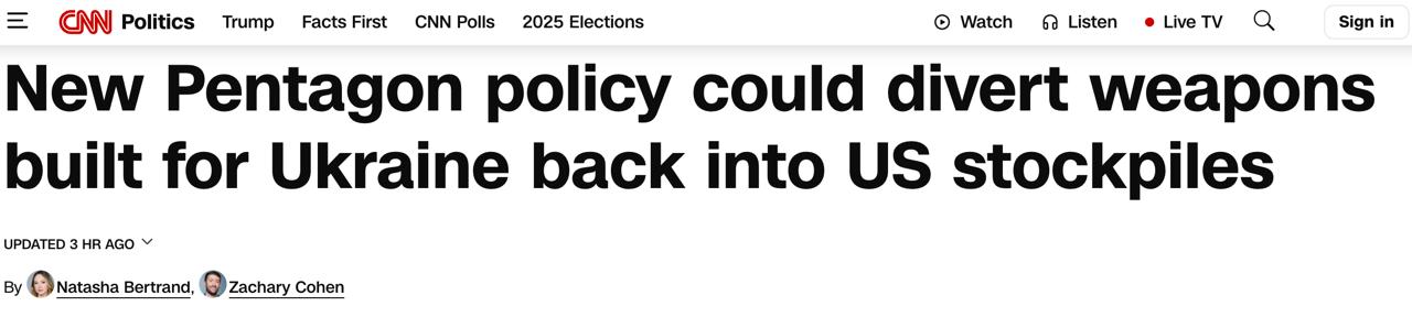 По их данным, Пентагон в прошлом месяце подготовил меморандум, согласно которому может вернуть определенное оружие и технику на миллиарды долларов, предназначенные для Украины в рамках программы "Инициатива по содействию безопасности Украины", обратно на американские склады для пополнения собственных сокращающихся запасов.