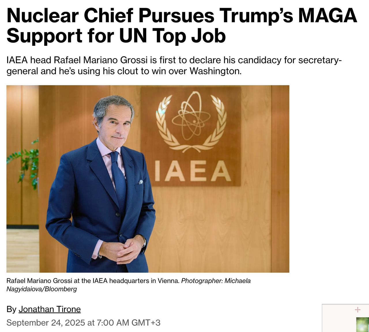 Глава МАГАТЭ Гросси выдвинулся на пост генсека ООН и ищет поддержку Трампа - Bloomberg