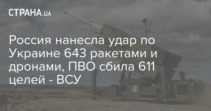 Россия нанесла удар по Украине 643 ракетами и дронами, ПВО сбила 611 целей - ВСУ