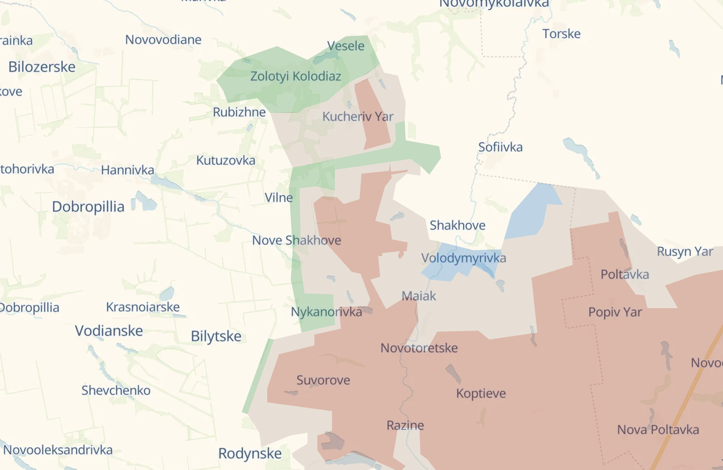 "Это создаёт новую угрозу: уже сейчас враг может получить удобные позиции для работы FPV-дронами по трассе, которая проходит рядом. Если ему удастся продвинуться дальше и занять Вишнёвое, откроется возможность наносить удары по Покровскому и Александровке, фактически подтягивая линию фронта ещё ближе к этим населённым пунктам", - анализирует ситуацию украинский боец с позывным "Мучной".