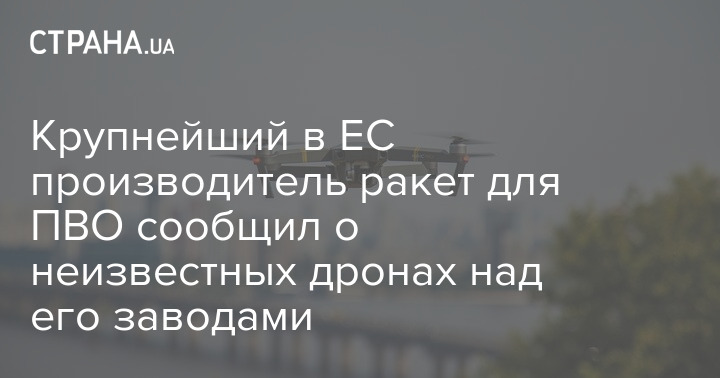 Крупнейший в ЕС производитель ракет для ПВО сообщил о неизвестных дронах над его заводами