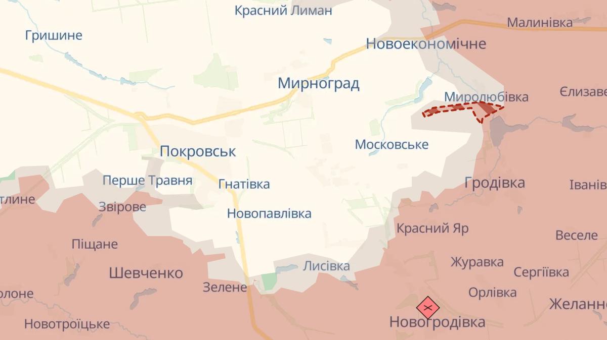 09:39 Россияне впервые за долгое время продвинулись к востоку от Мирнограда - на 4-5 километров со стороны Миролюбовки, сообщает Deep State.