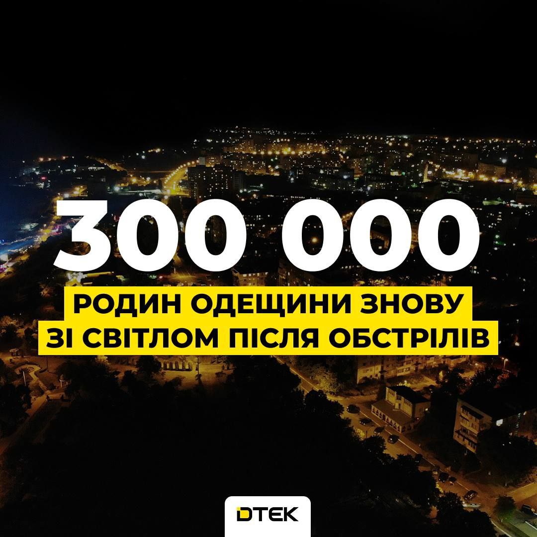 В то же время, как заявляет компания, после ночного обстрела в области восстановлено электричество для 290 тысяч.