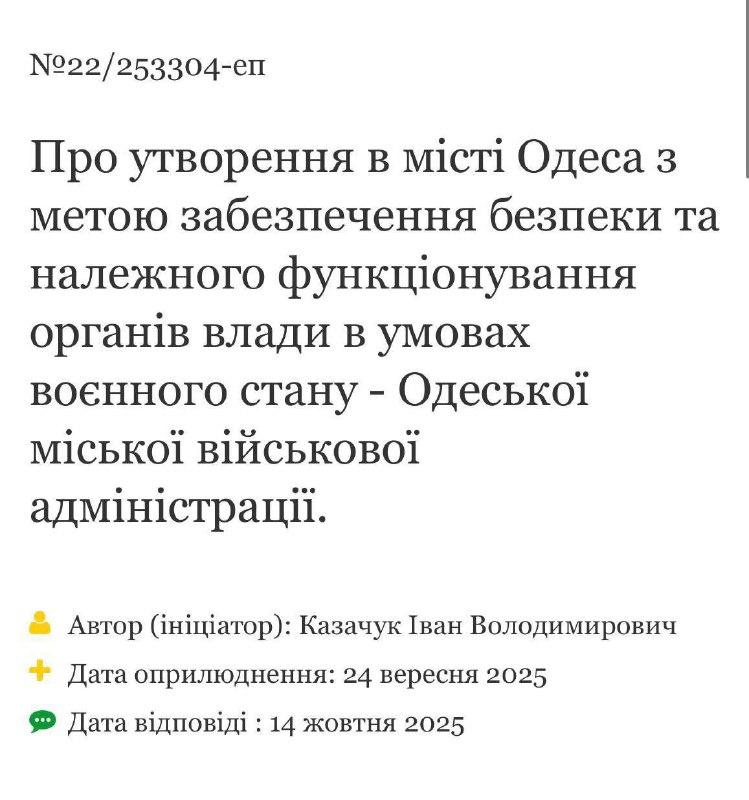 Владимир Зеленский призвал председателя Одесской областной государственной администрации Олега Кипера и главнокомандующего ВСУ Александра Сырского оценить необходимость создания военной администрации Одессы, которая будет управлять городом вместо мэра Геннадия Труханова.
