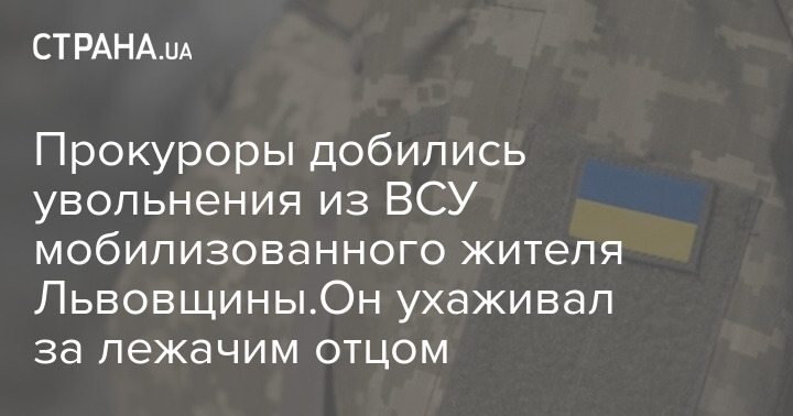 Прокуроры добились увольнения из ВСУ мобилизованного жителя Львовщины.Он ухаживал за лежачим отцом