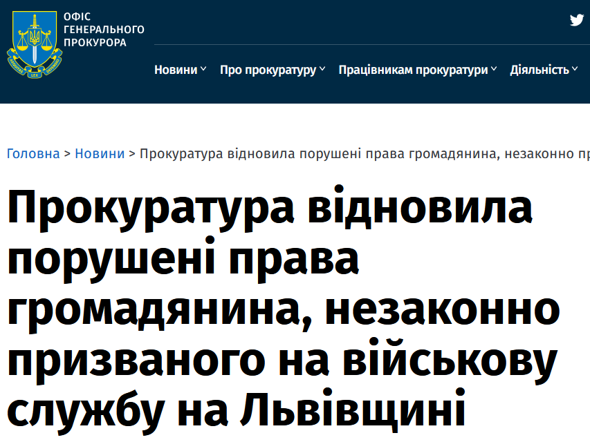 Прокуратура добилась увольнения из Вооруженных сил Украины незаконно мобилизованного жителя Львовской области, который был единственным опекуном отца-инвалида.