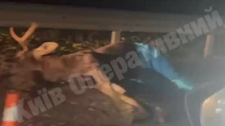 На трассе Киев–Ирпень Lexus врезался в лося: водитель погиб, пассажир в больнице.