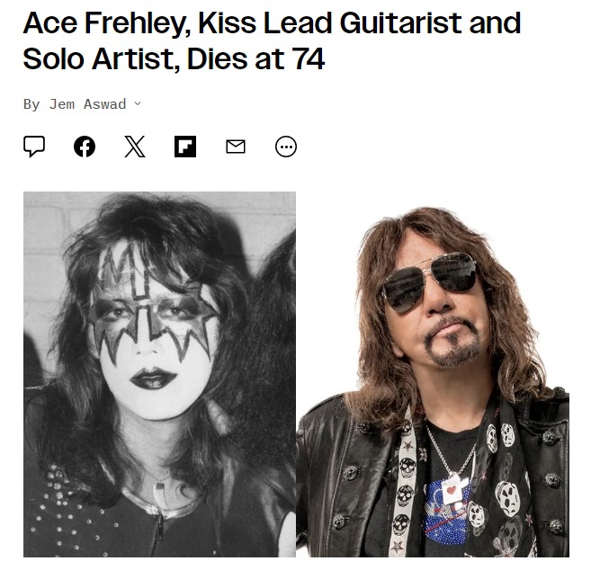 В США скончался Пол Дэниел "Эйс" Фрейли - сооснователь, вокалист и ведущий гитарист американской рок-группы Kiss, ставшей пионером шок-рока и хард-рока. Ему было 74 года.