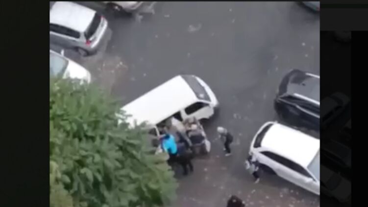 В одном из местных дворов города Днепр на парковке завязалась массовая драка между гражданскими и представителями ТЦК.