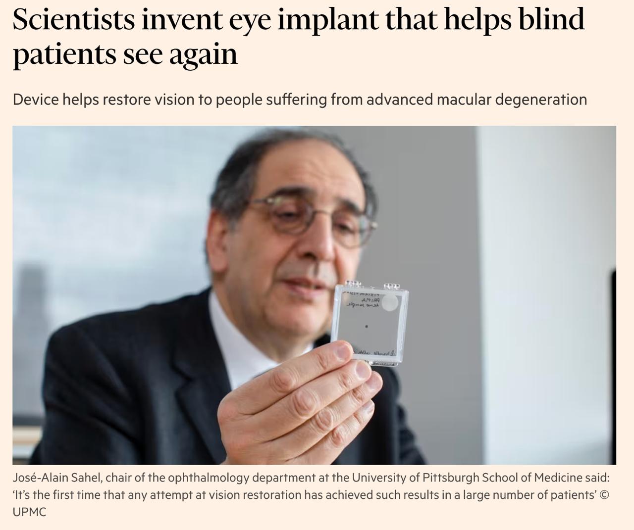 Ученые изобрели глазной имплантат, который поможет слепым пациентам частично восстановить зрение. Пациенты с географической атрофией смогут снова читать.