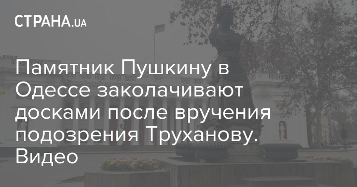 Памятник Пушкину в Одессе заколачивают досками после вручения подозрения Труханову. Видео