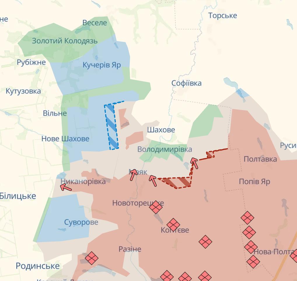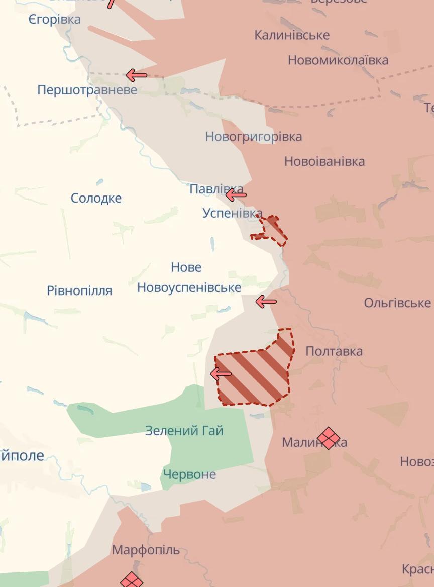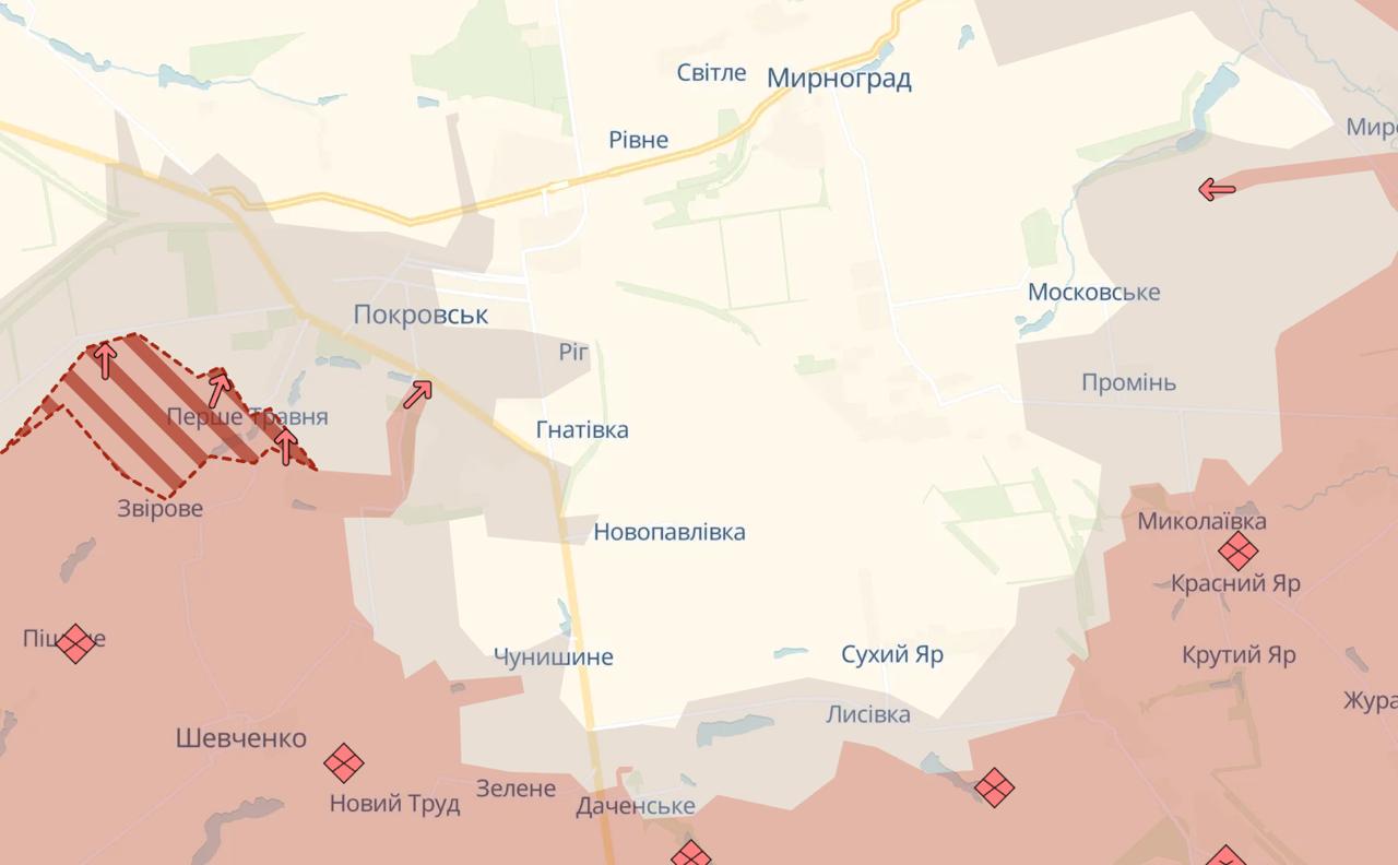 9.35 Армия РФ продвинулась южнее Покровска и на востоке Запорожской области, сообщает Deep State.