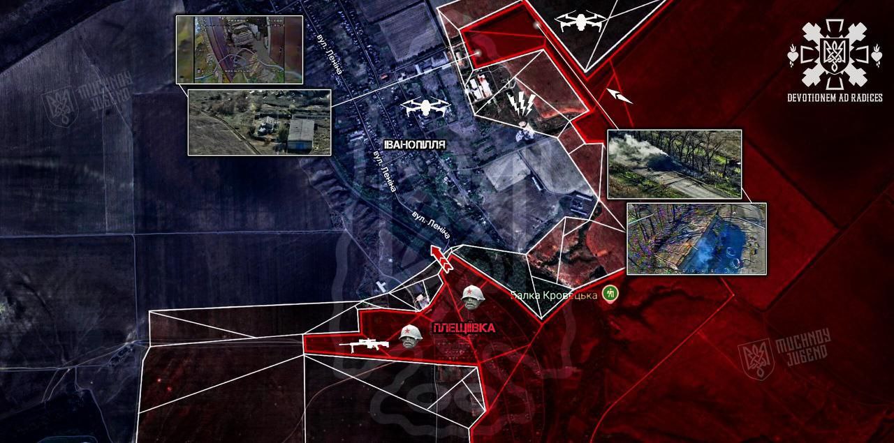 Боец ВСУ с позывным Мучной в свою очередь обращает внимание на события к югу от города. По его информации, там уже практически полностью захвачена Плещеевка (по данным Deep State, это село еще находится под контролем Украины) и развивается наступление на соседнее Иванополье, за которым начинается южная окраина Константиновки.