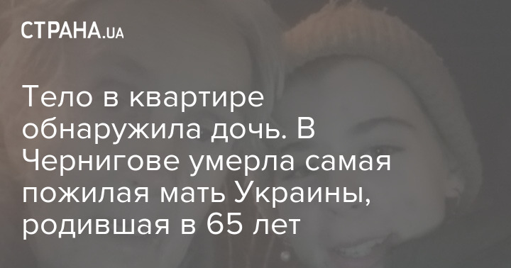 Тело в квартире обнаружила дочь. В Чернигове умерла самая пожилая мать Украины, родившая в 65 лет