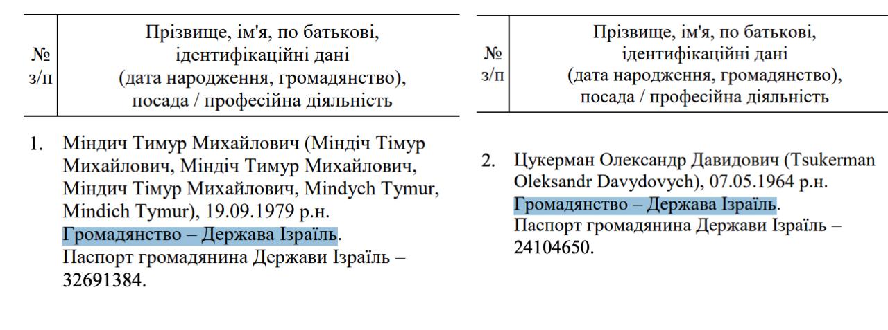 Согласно указу, Миндич и Цукерман имеют гражданство Израиля, при этом их украинское гражданство не упоминается. Таким образом, ограничения для граждан Украины на них не распространяются.