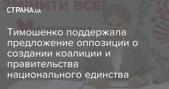 Тимошенко поддержала предложение оппозиции о создании коалиции и правительства национального единства
