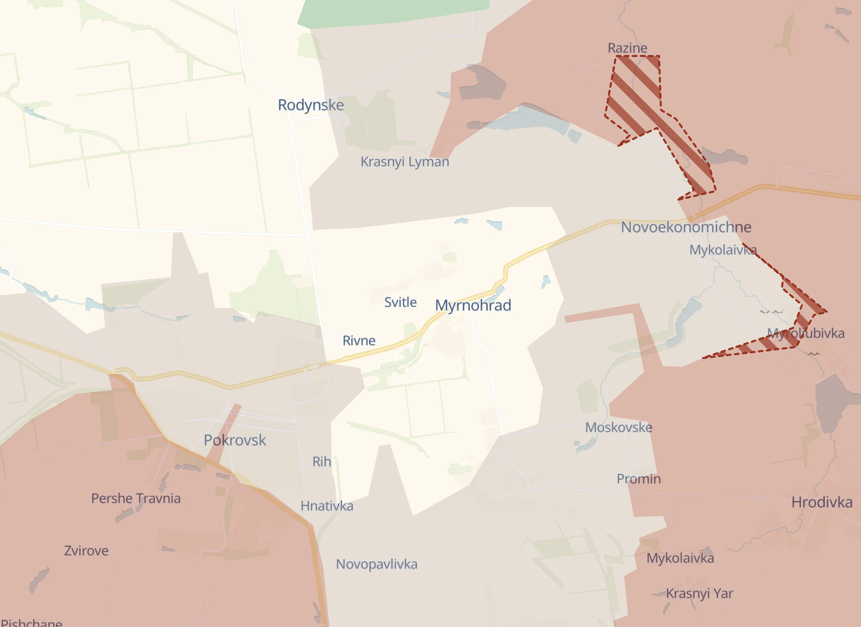 Deep State пишет, что россияне продвинулись к востоку от Мирнограда.