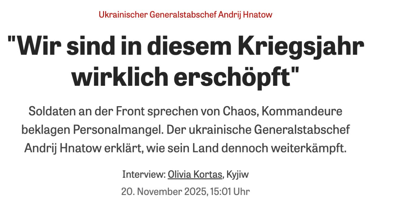 Об этом сообщил начальник Генерального штаба ВСУ Андрей Гнатов в интервью Die Zeit.