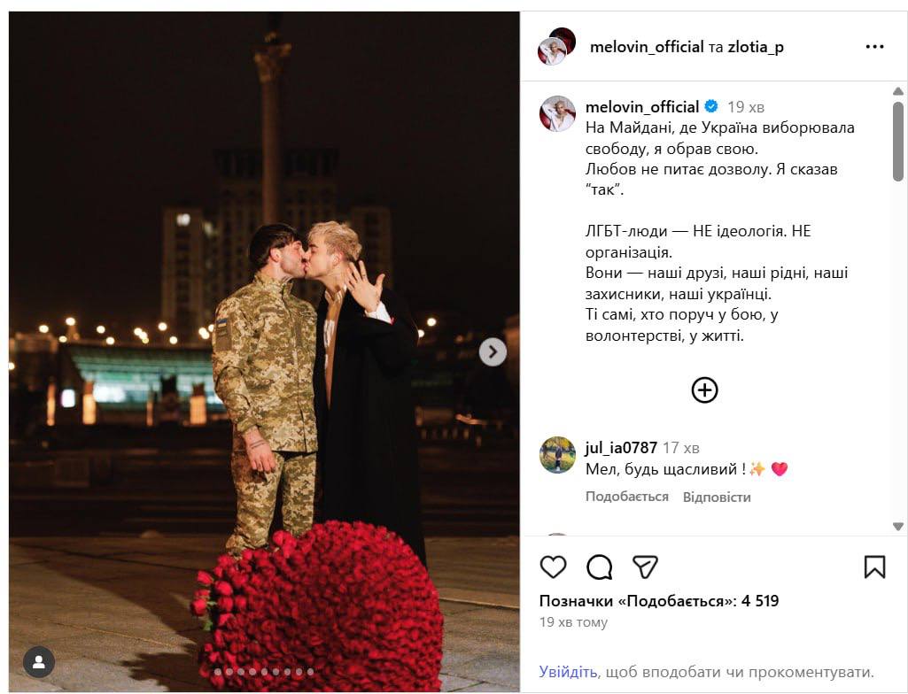 "Любовь не спрашивает разрешения". Украинский певец Melovin обручился с военным ВСУ. Фото
