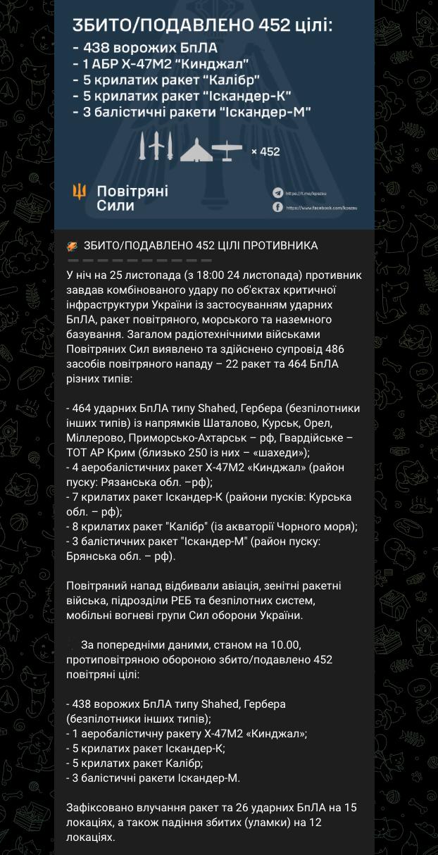 Было 26 прилетов в 15 локациях. Целью стали объекты критической инфраструктуры (Минэнерго уже подтверждало прилеты по энергетике).