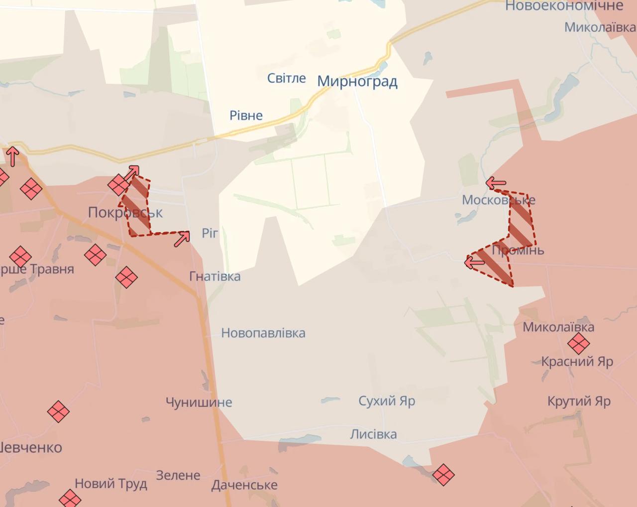 Армия РФ существенно продвинулась в Покровске и под Мирноградом, сообщает DeepState.