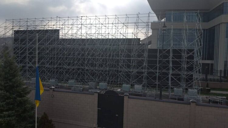 "Новый элемент протокола". Посольство Украины в Кыргызстане спрятали за экраном в дни визита Путина. Видео