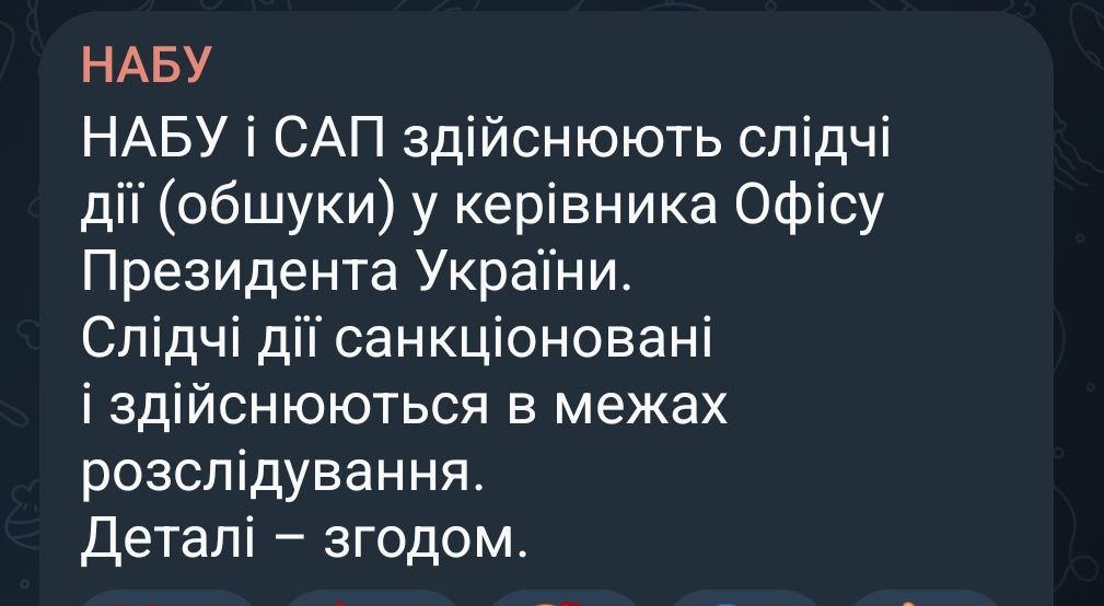 Издание "Украинская правда" уточнило, что обыски ведутся в правительственном квартале. А журналист Financial Times Кристофер Миллер со ссылкой на источники написал в Х, что они идут у Ермака дома. По его данным, следственные действия связаны с делом о коррупции в энергетике.
