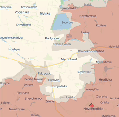 На участке Родинское – Гришино зафиксировано продвижение российских групп на нескольких направлениях. Россияне вышли западнее перекрестка дороги на Гришино, а отдельные подразделения закрепились на юго-восточной окраине самого Гришино. Южнее Родинского украинские силы пока не смогли остановить продвижение РФ, что увеличивает глубину охвата покровского узла и ухудшает положение обороны в Мирнограде.