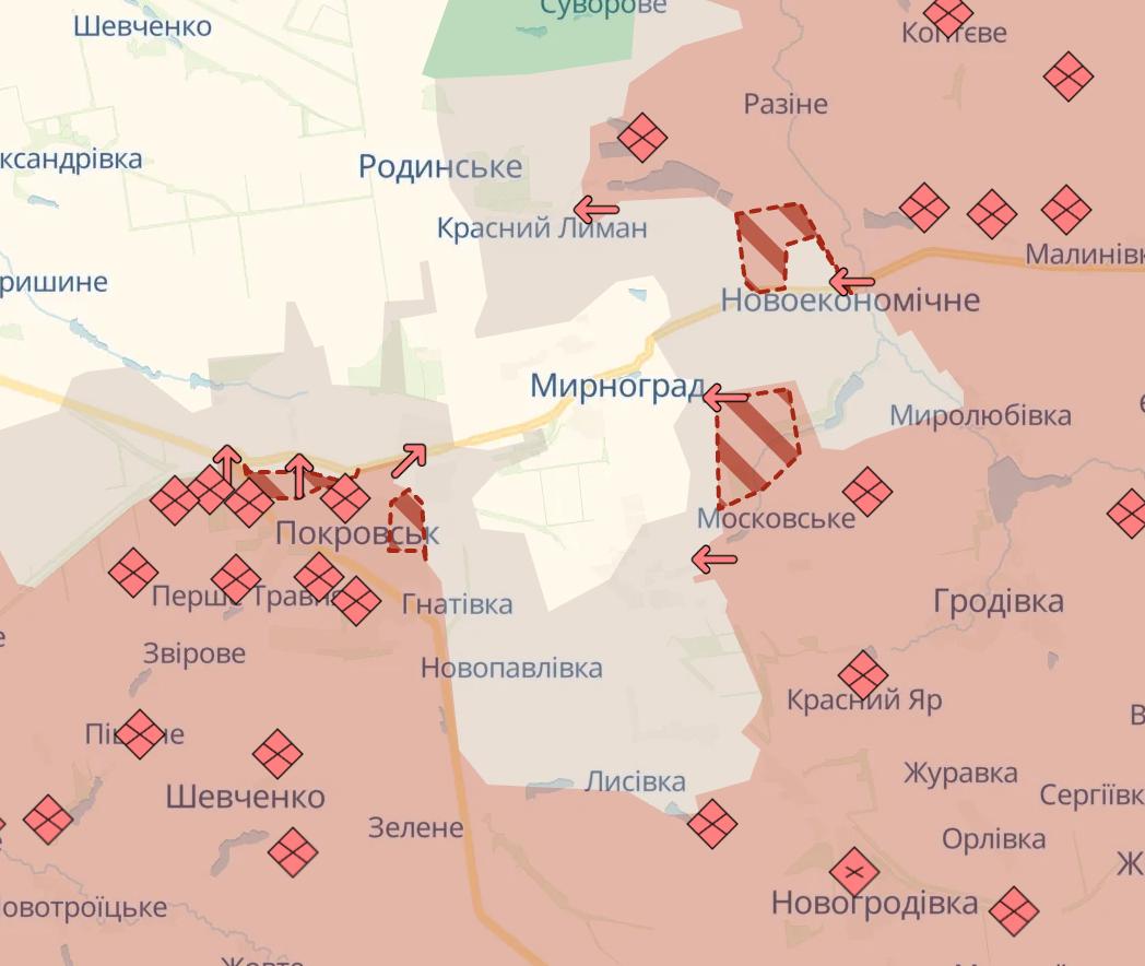 Deep State также не подтверждает полной потери Покровска, при этом паблик указывает, что россияне за минувшие сутки снова продвинулись в городе.