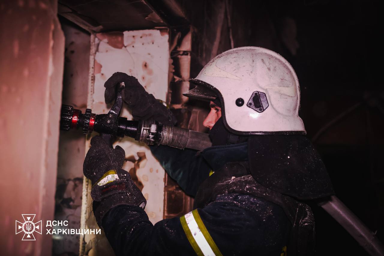 Тушение пожара в Харькове на месте удара дрона. Фото: ГСЧС