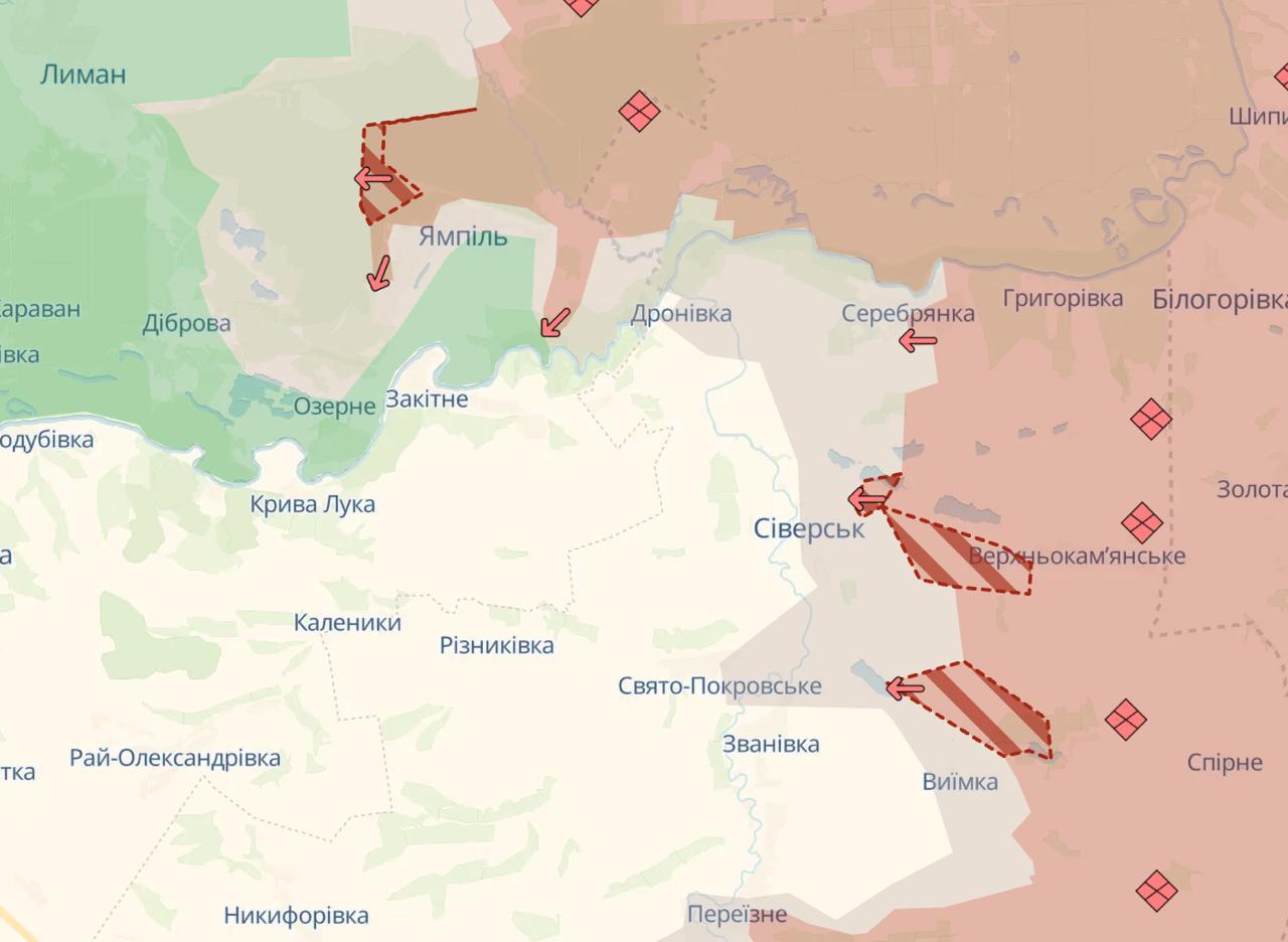 12:06 Армия РФ продвинулась под Ямполем и Северском на севере Донецкой области, сообщает Deep State.