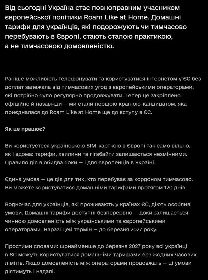 Напомним, что это стало возможным благодаря решению Совета ЕС от 16 июля, который поддержал предложение Европейской комиссии о включении Украины в зону роуминга Roam Like at Home с 1 января 2026 года.