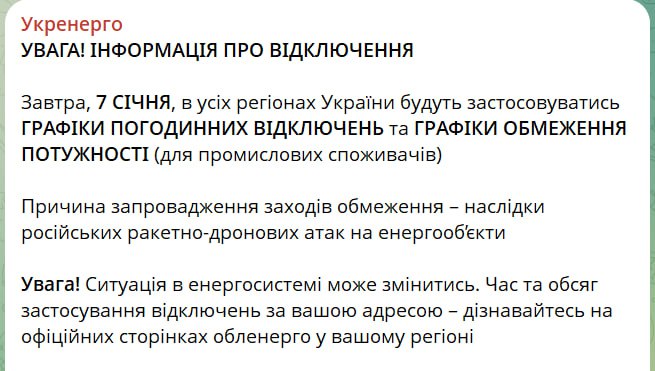 18.06 Графики отключения света завтра будут действовать во всех регионах, сообщает "Укрэнерго".