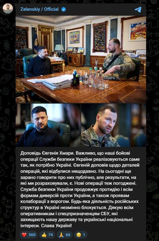 По его словам, Хмара доложил о проведённых операциях СБУ, характер которых пока не разглашается, а также о согласовании новых операций.