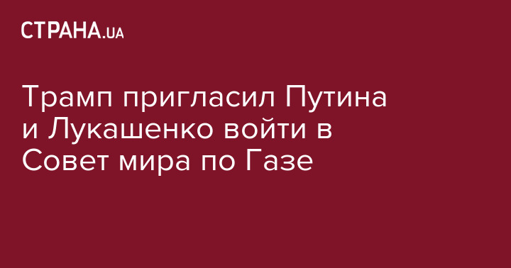 Президент США Дональд Трамп предложил российскому и белорусскому коллегам Владимиру Путину и Александру Лукашенко войти в Совет мира, который будет управлять сектором Газа.