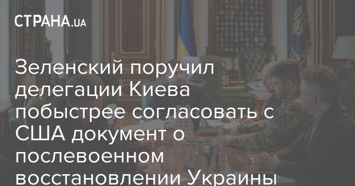 Президент Украины Владимир Зеленский поручил украинской делегации как можно скорее согласовать с США документ о послевоенном восстановлении страны.