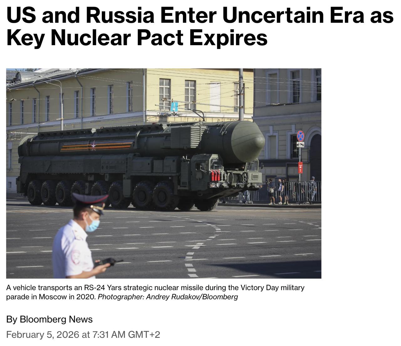 США и Россия вступают в эпоху неопределенности и риска новой гонки вооружений впервые с 1980-х в связи с истечением срока Договора о стратегических наступательных вооружениях (ДСНВ).