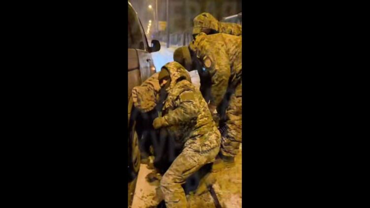На опубликованных кадрах видно, как один из военкомов повалил убегавшего от группы оповещения мужчину. К потасовке сразу присоединились остальные сотрудники ТЦК, и один из них начал ногами и руками избивать лежащего на земле человека, которого держали его коллеги. В ответ на возмущения снимавшей видео женщины самый разъярённый военком, который в основном и наносил удары, послал её.